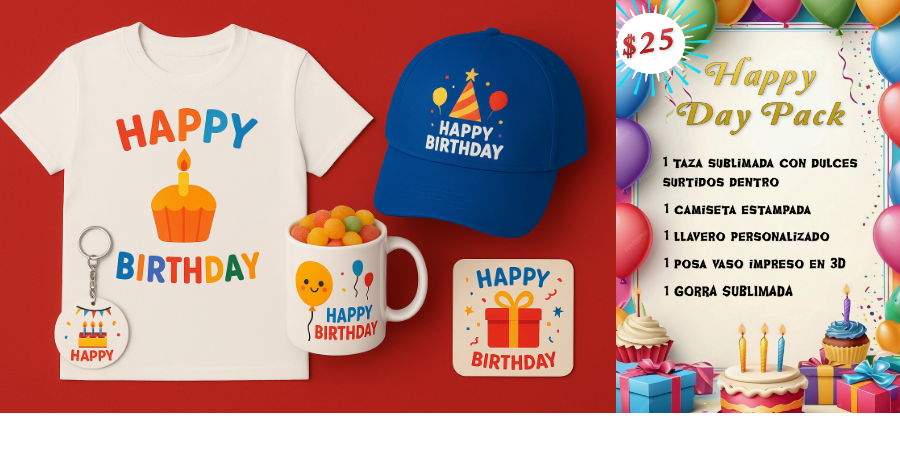 Un paquete creativo fusiona sublimación profesional e impresión 3D de alta precisión para ofrecerte soluciones personalizadas, funcionales y visualmente impactantes. Ya sea para tu marca, un evento o un regalo especial, encontrarás el equilibrio perfecto entre diseño, personalización y tecnología.